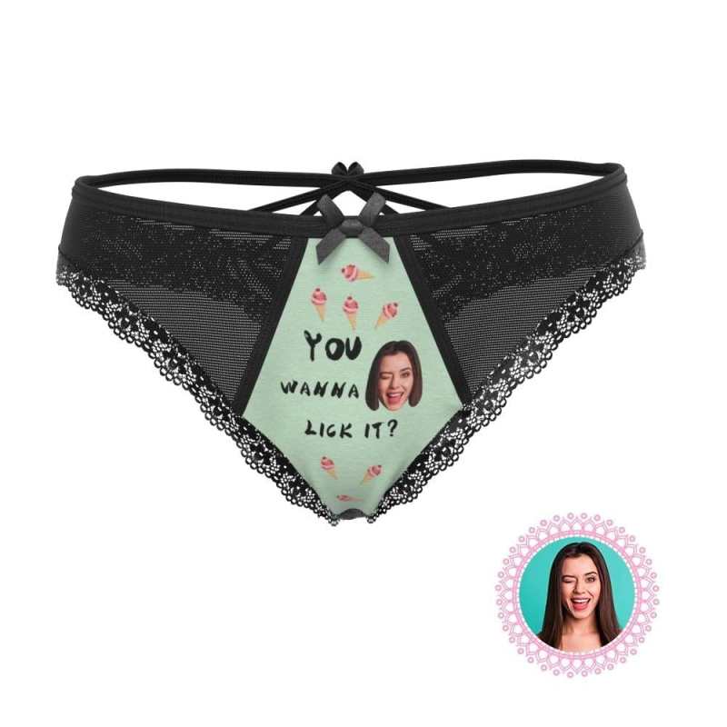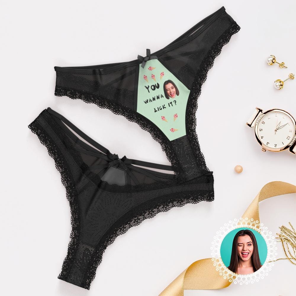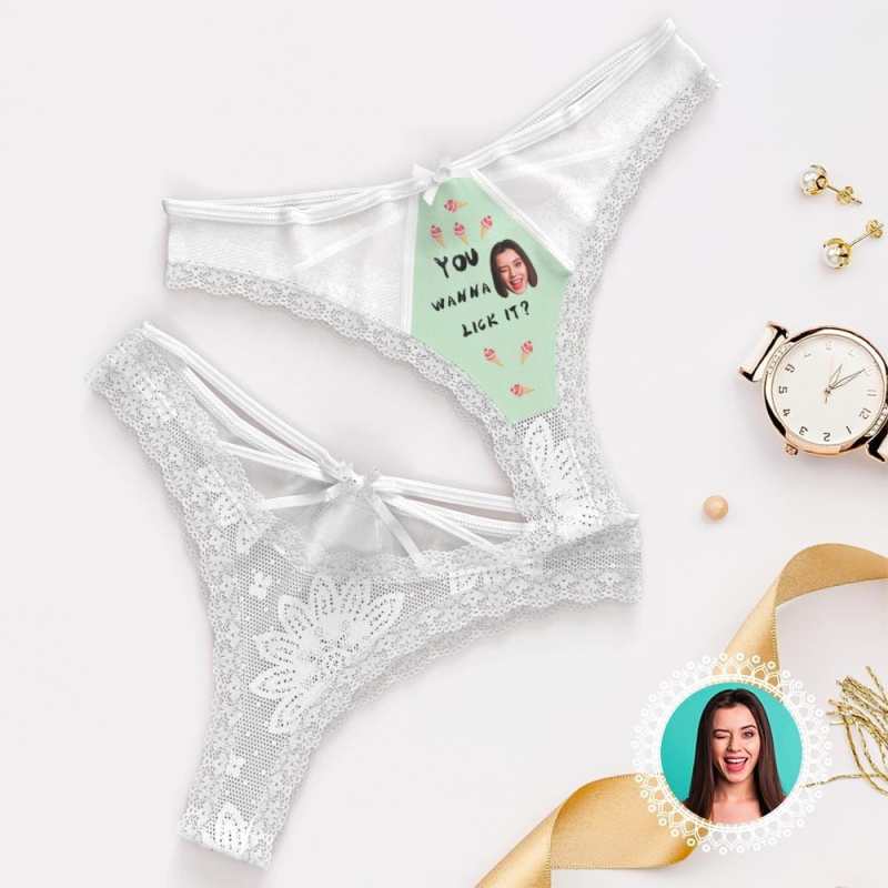 Custom Thong Lace Thong Panty Personalized Valentines Day Gifts For Her - You Wanna Lick It