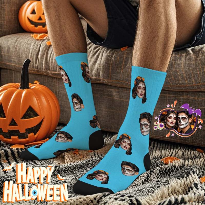 Halloween Gifts Custom Face Socks 3D Preview Add Pictures And Name Colorful