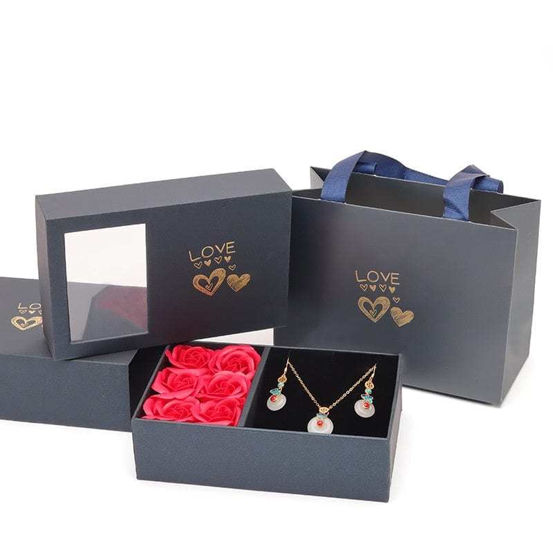 Jewelry box Rose window heaven and Earth lid 6 rose pendant ring for her present. You can put your jewelry on the left side of this jewelry box, and on the right side you will find six immortal roses, representing your love will never die. Customize this jewelry box and give it to your date. Trust me, she will love this gift.