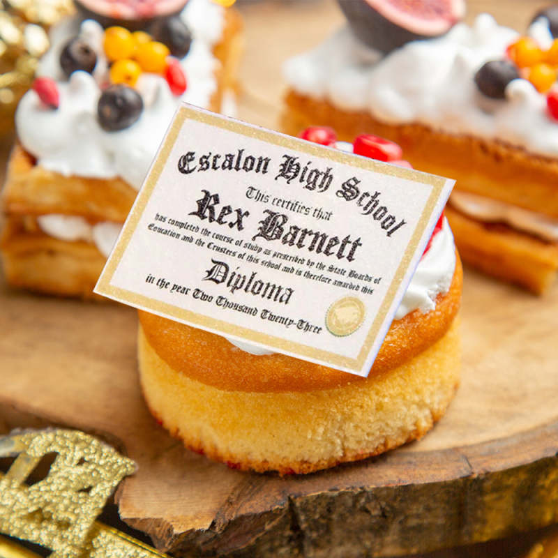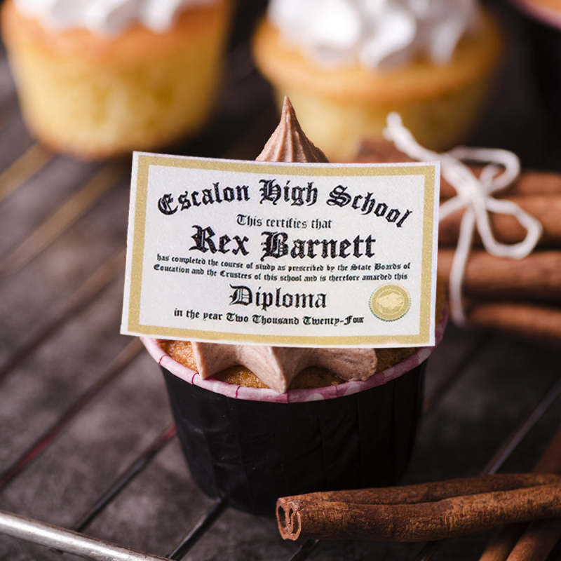 These personalized edible graduation diplomas are perfect for adding a special touch to any graduation celebration. Made of delicious and customizable ingredients, these cupcake toppers, cookie decorations, and cake gifts are the perfect way to congratulate the graduate in a unique and tasty way. Complete with a customized diploma design, these treats are sure to impress and delight.