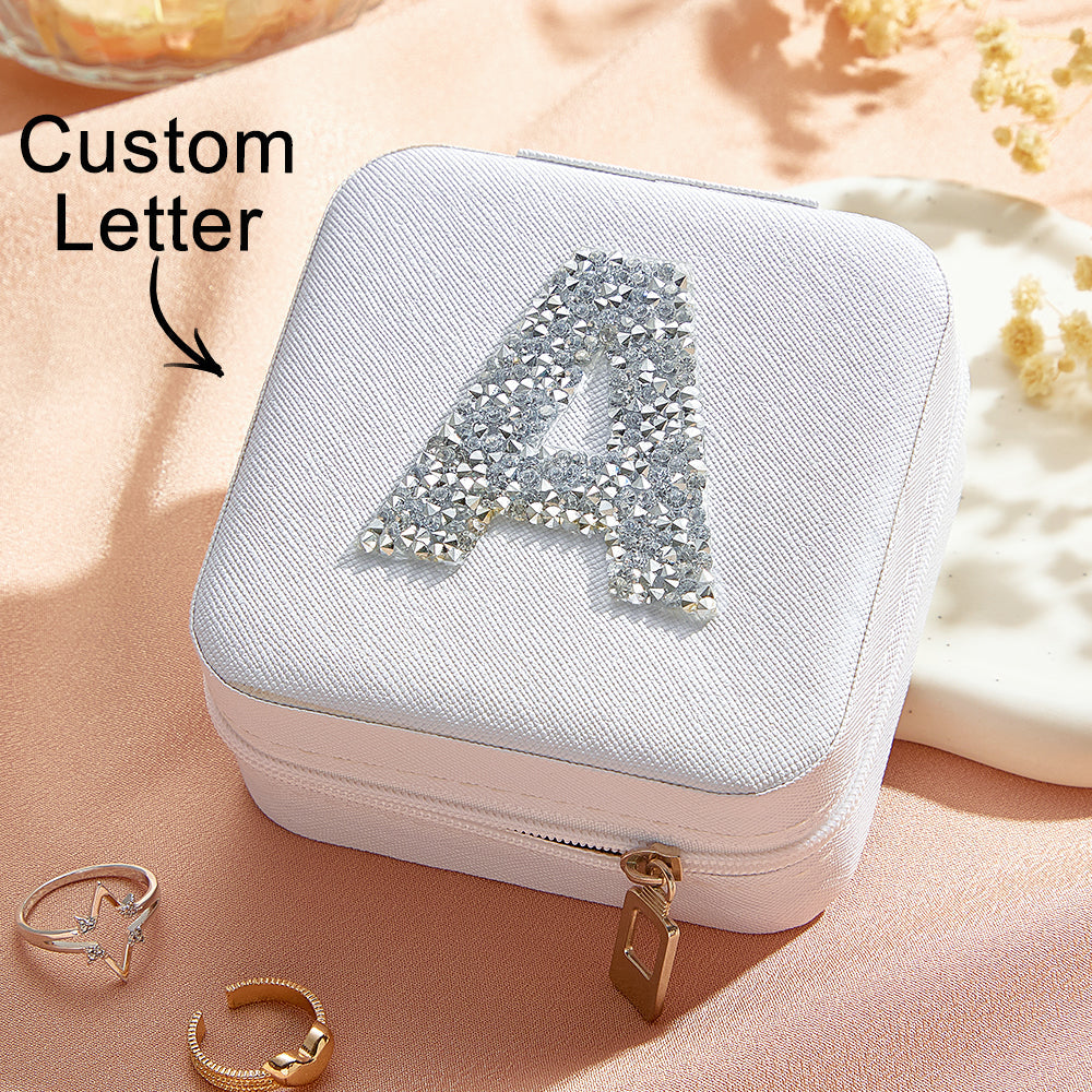 Personalized Jewelry Box with Glitter Letter Bridesmaid Gift for Her