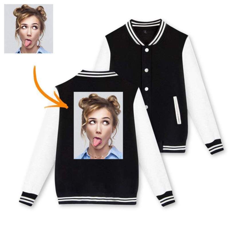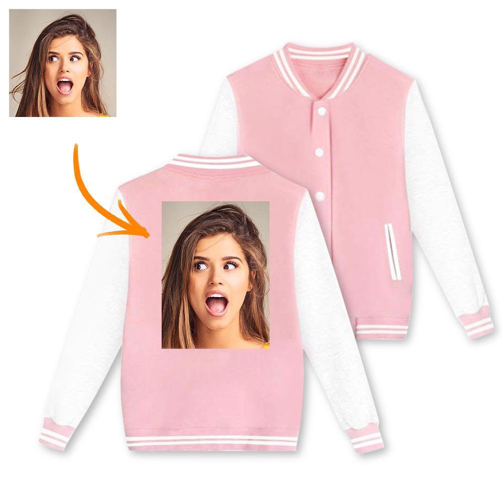 Custom Photo Baseball Jacket Sportswear Gray Black Pink - for Women