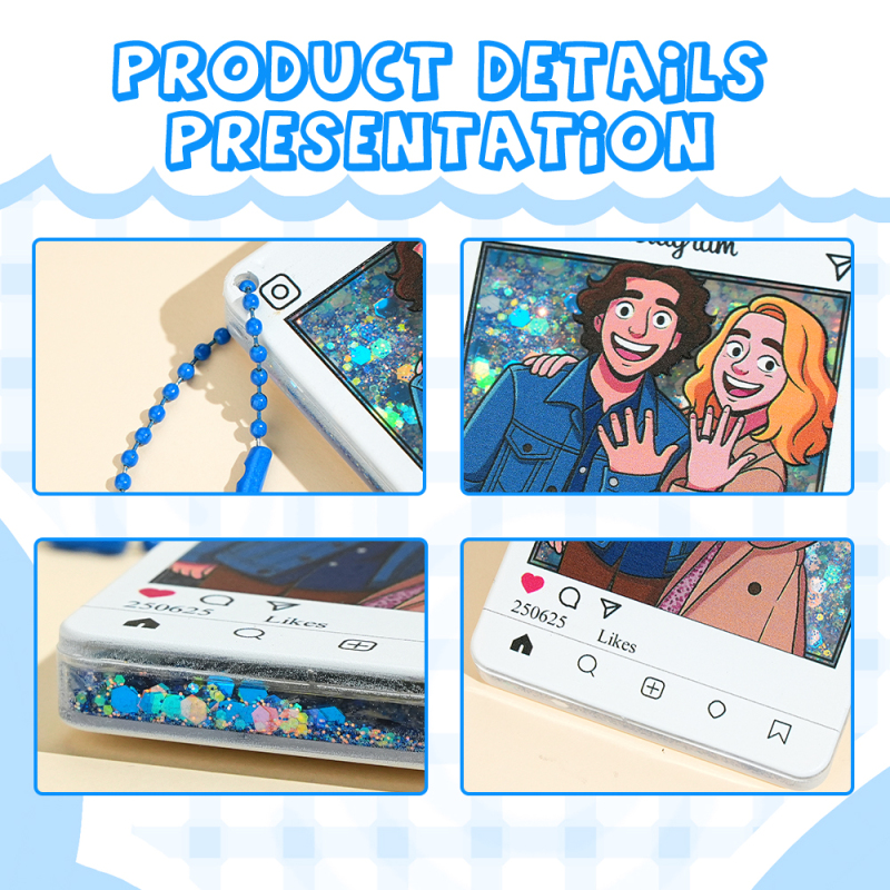Turn your favorite photo into a unique cartoon-style Instagram-themed glitter keychain! With a trendy design and sparkling liquid inside, it’s eye-catching, fun, and totally personal.