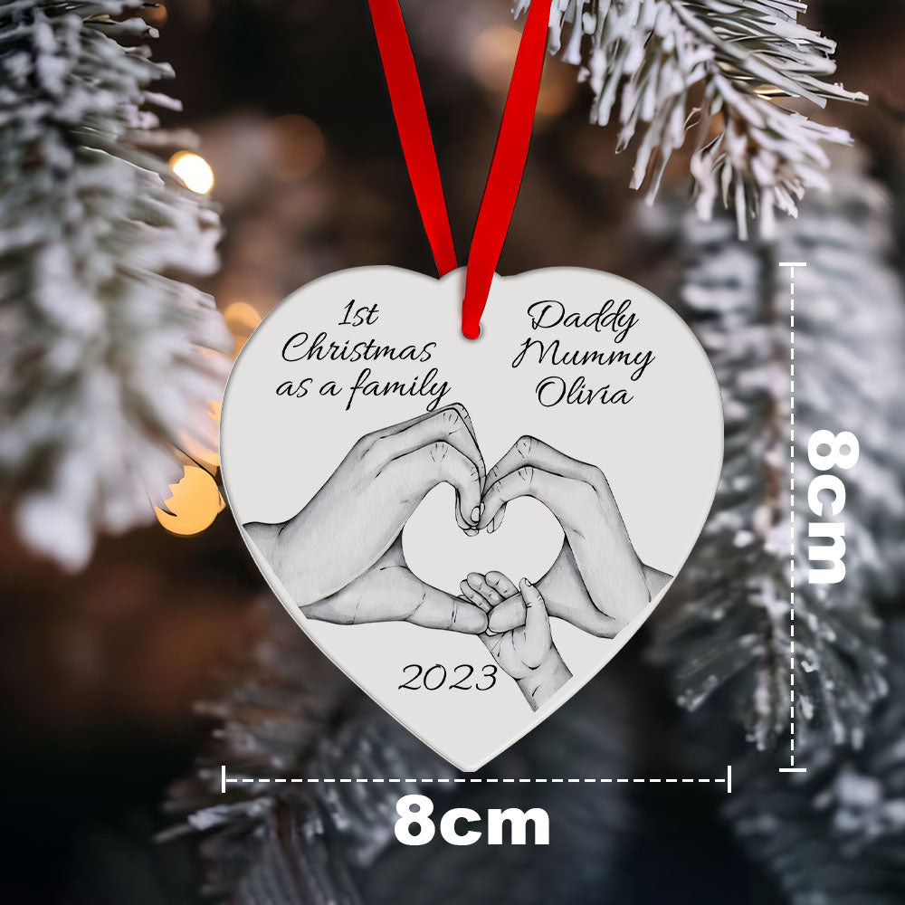 Custom Christmas Tree Decor Personalized Name Heart Ornament First Christmas as a Family