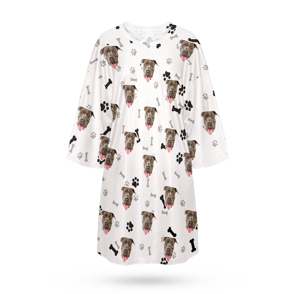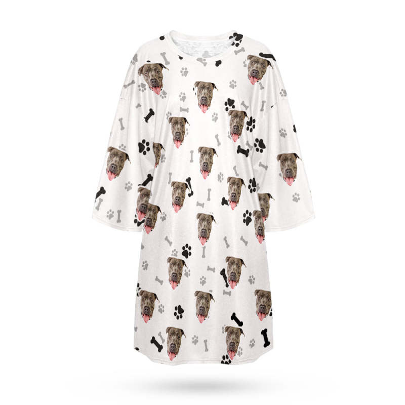 Custom Dog Face Nightdress Personalized Photo Women's Oversized Colorful Nightshirt Bone Gifts For Women