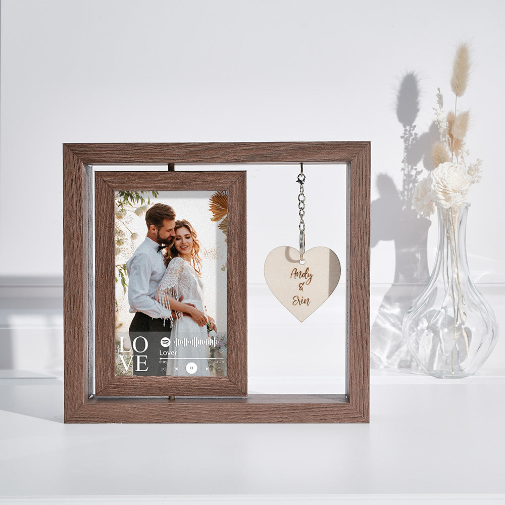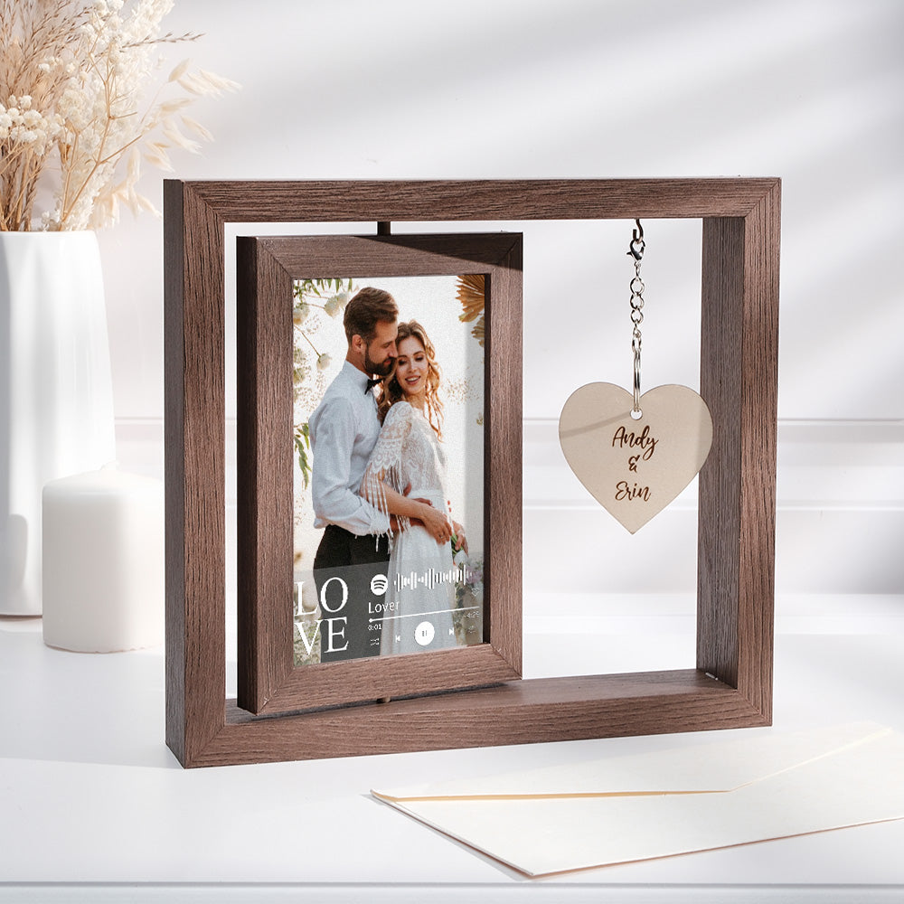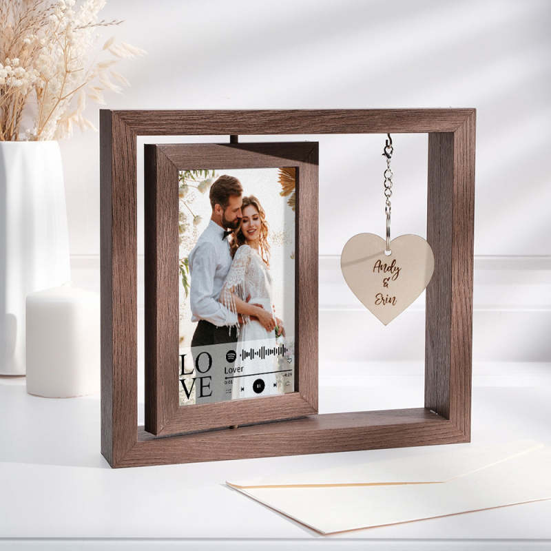 Custom Engraved Rotating Floating Picture Frames Double-Sided For Couple Personalized Engagement Gift