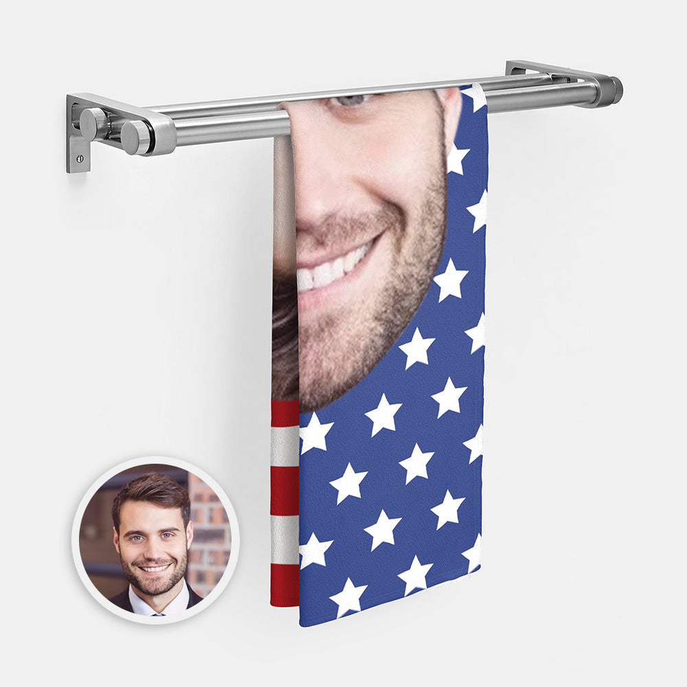 Custom Face Flag Towel Personalized Photo Towel Funny Gift