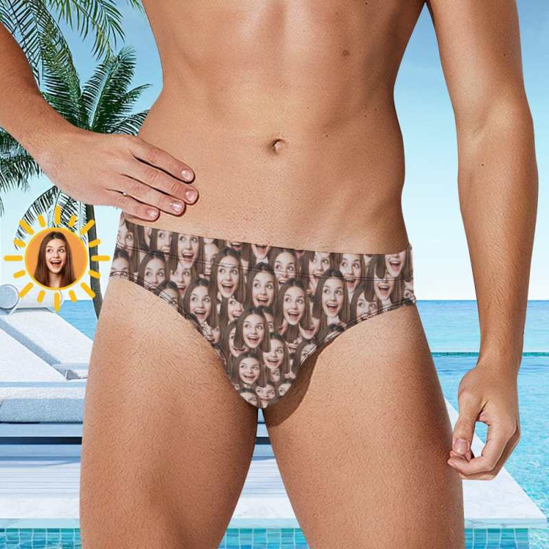 Custom Face Men's Swimming Trunks Personalized Face Mash Triangle Swim Briefs