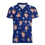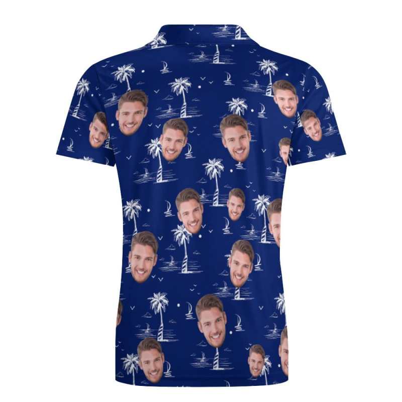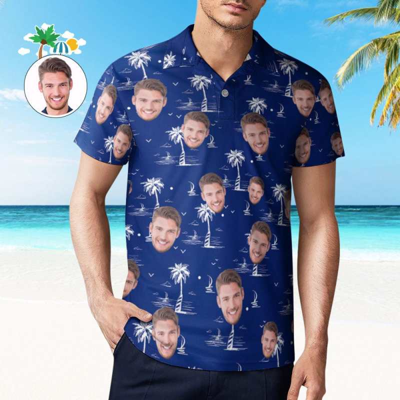 Custom Face Polo Shirt For Men Coconut Tree Island Personalized Hawaiian Golf Shirts