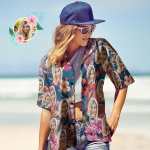 Custom Face Shirt Women's Hawaiian Shirt Short Sleeve Shirt Fashion Apparel Colorful Flowers