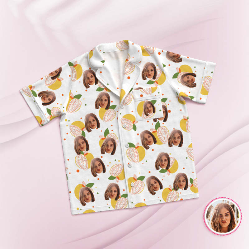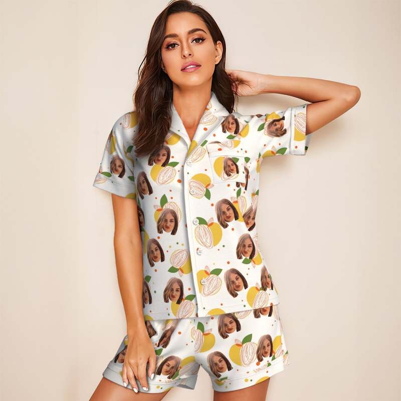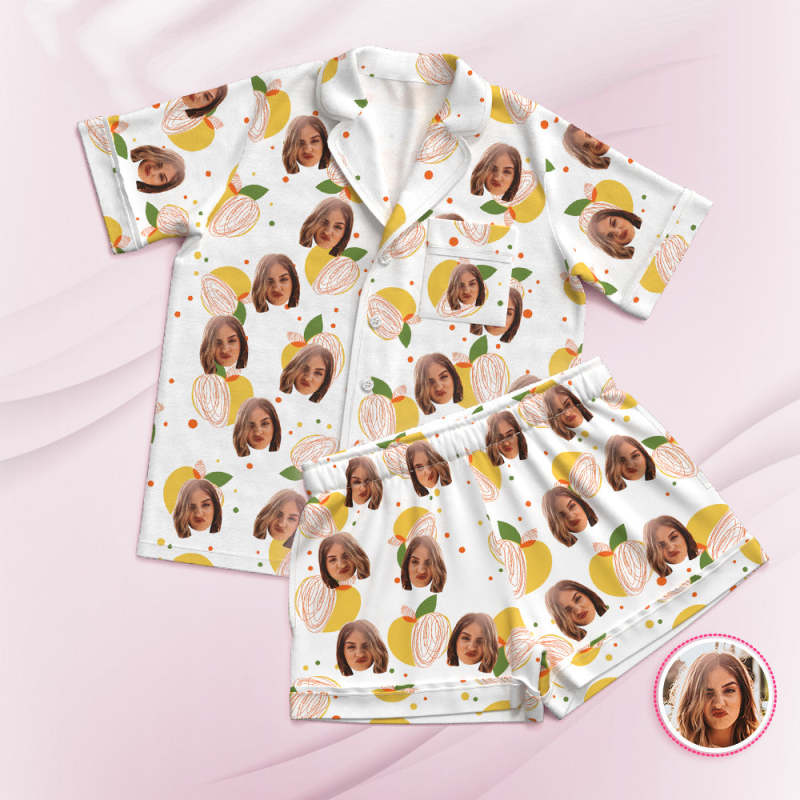Custom Face Short Sleeved Pajamas Personalized Photo Sleepwear Lemon Gifts