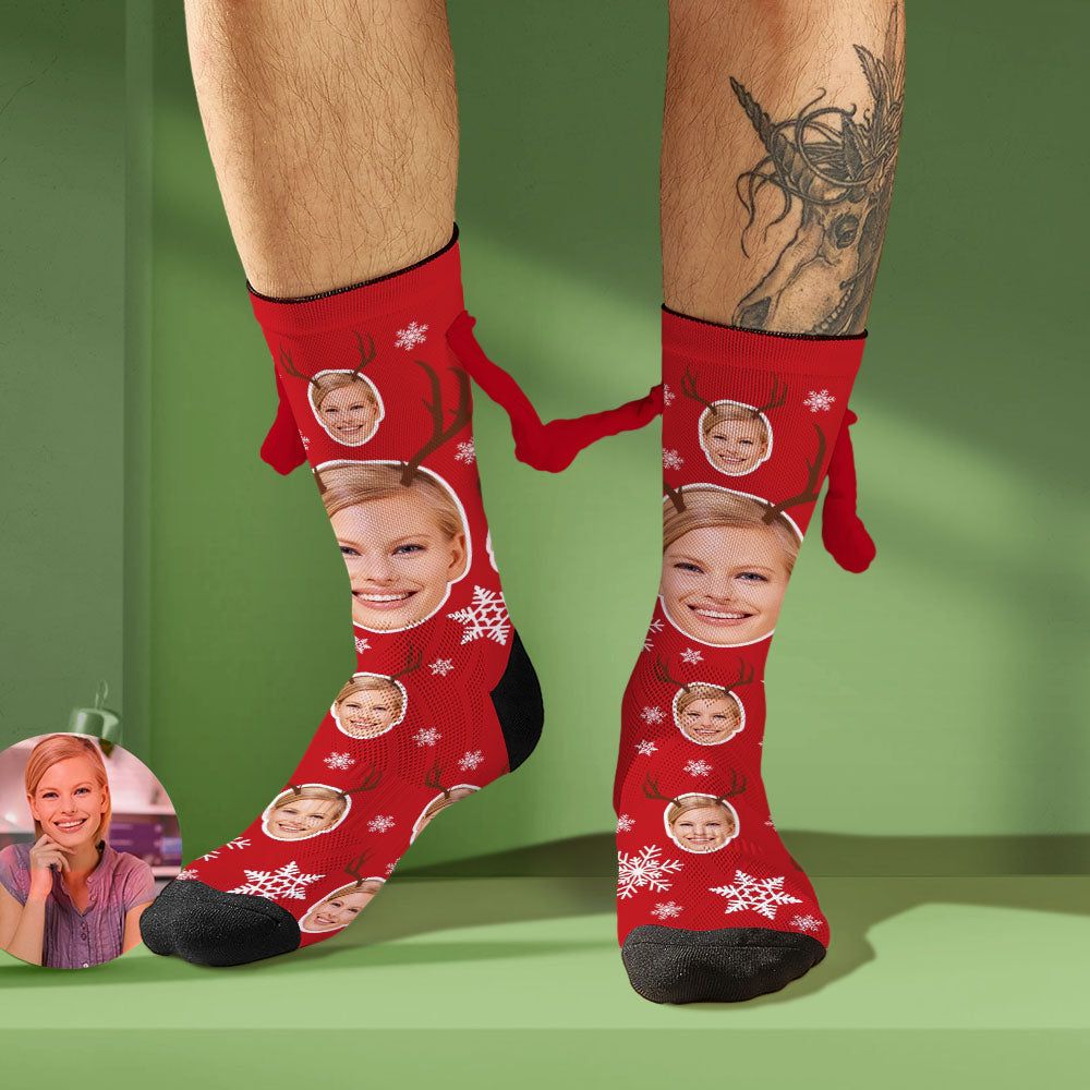 Custom Face Socks Funny Doll Mid Tube Socks Magnetic Holding Hands Socks Cute Elk