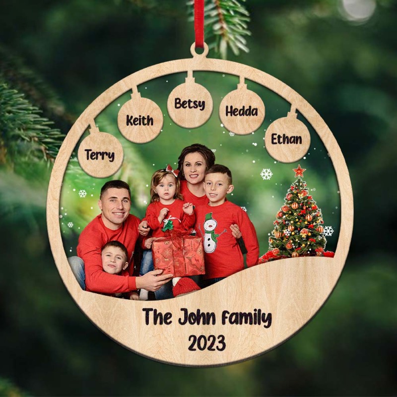 Custom Family Photo and Name Acrylic and Wood Christmas Ornament Christmas Gift