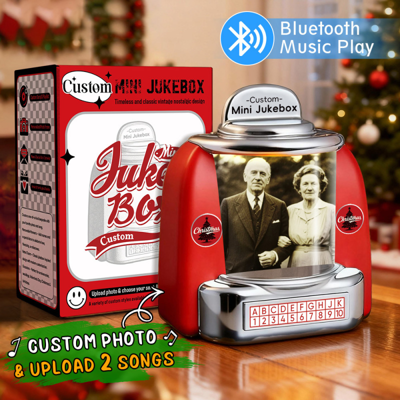 Custom Mini Jukebox Retro Speaker – Personalized Photo & 2 Songs Mini Player with Radio | Vintage Tabletop Home Decor Nostalgic Gift