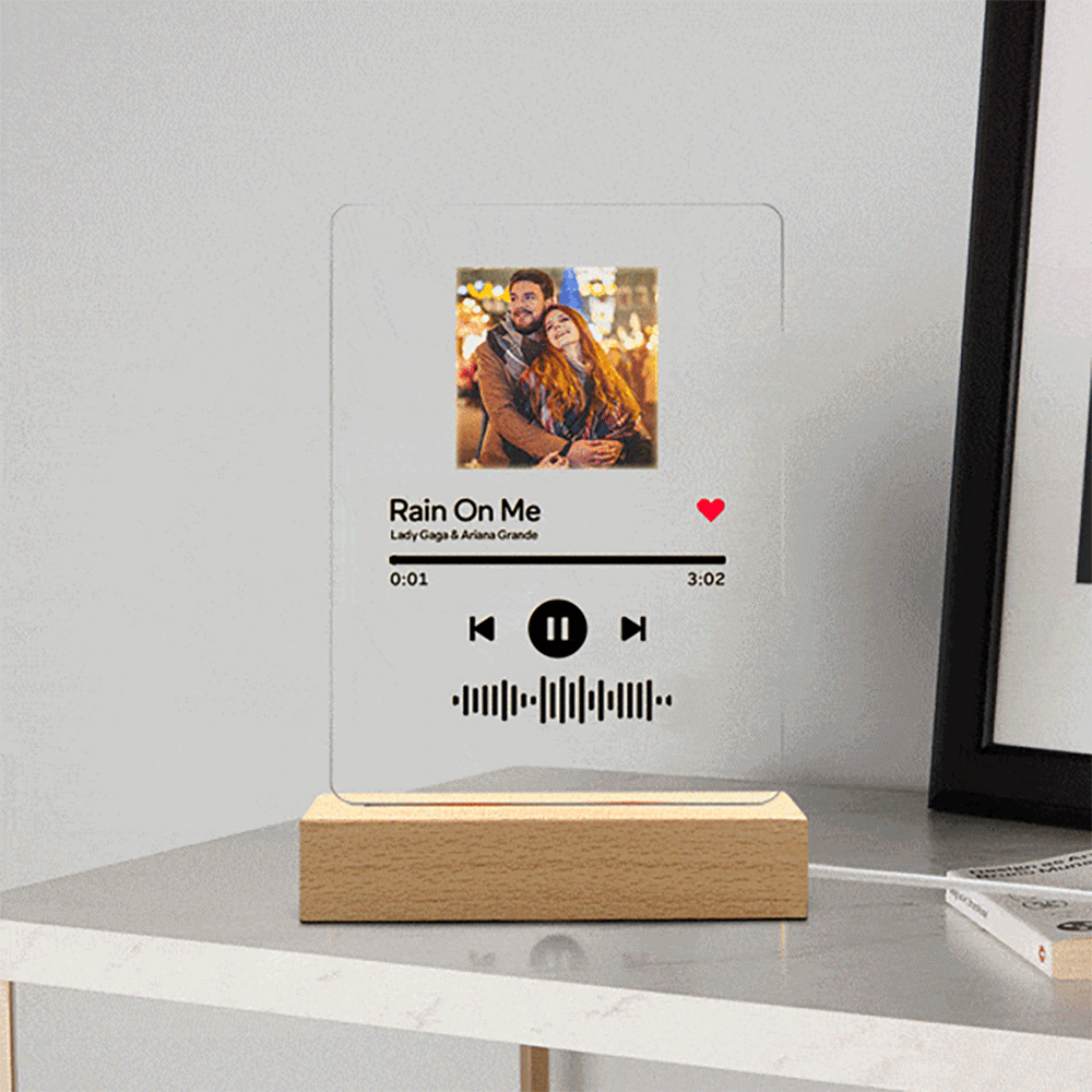 - Choose your favorite song/album and turn it into a beautiful custom song keychain, Plaque frame, keychain+Plaque frame, and night lamp. You can add a music code! As soon as you scan the code your song will instantly begin to play. You can automatically search for song titles and artists, and you can also choose to recommend songs. You can customize and upload the photos you designed, you can also choose the song album cover, we provide customers with free choice. Please note that these plaques are made with a clear acrylic sheet that ensures safety during transit and is much more durable than glass, they are not made from acrylic.