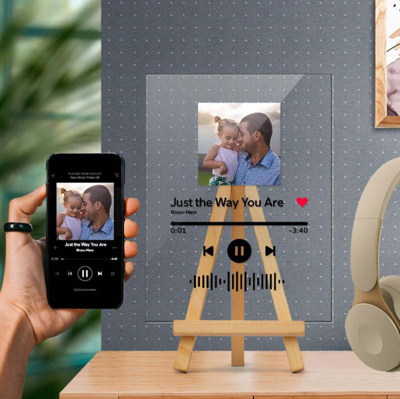 - Choose your favorite song/album and turn it into a beautiful custom song keychain, Plaque frame, keychain+Plaque frame, and night lamp. You can add a music code! As soon as you scan the code your song will instantly begin to play. You can automatically search for song titles and artists, and you can also choose to recommend songs. You can customize and upload the photos you designed, you can also choose the song album cover, we provide customers with free choice. Please note that these plaques are made with a clear acrylic sheet that ensures safety during transit and is much more durable than glass, they are not made from acrylic.