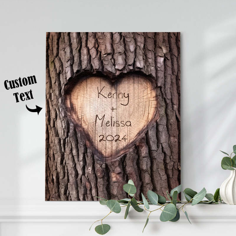 Custom Name Imitation Wood Grain Canvas Painting Personalized Romantic Couple Valentine Gifts