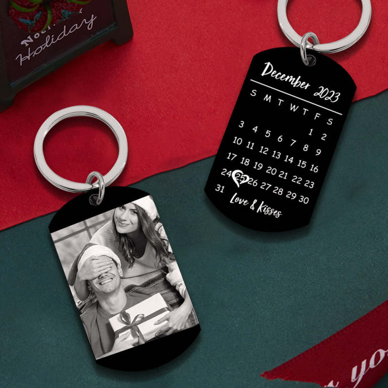 Custom Photo Calendar Keychain Personalized Stainless Steel Keychain Christmas Gifts for Lover