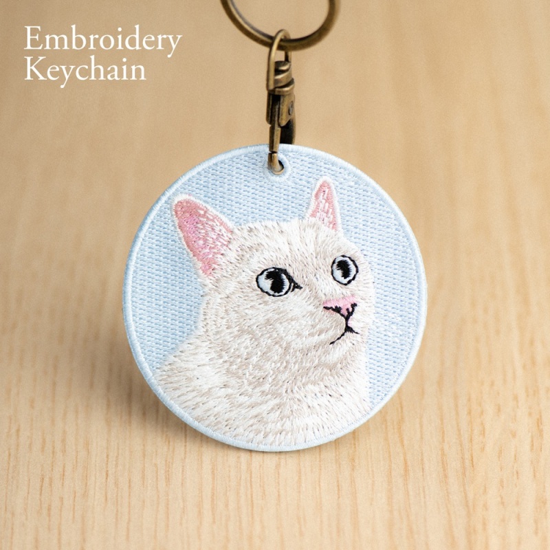 Embroidered Cat Keychain Realistic Cat Breed Design Cute Animal Keychain for Cat Lovers