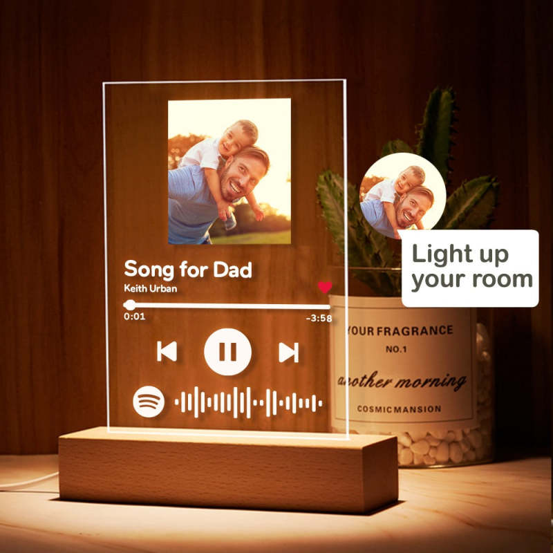 Father's Day Night Light Spotify Plaque With Stand Custom Family Gifts for Dad