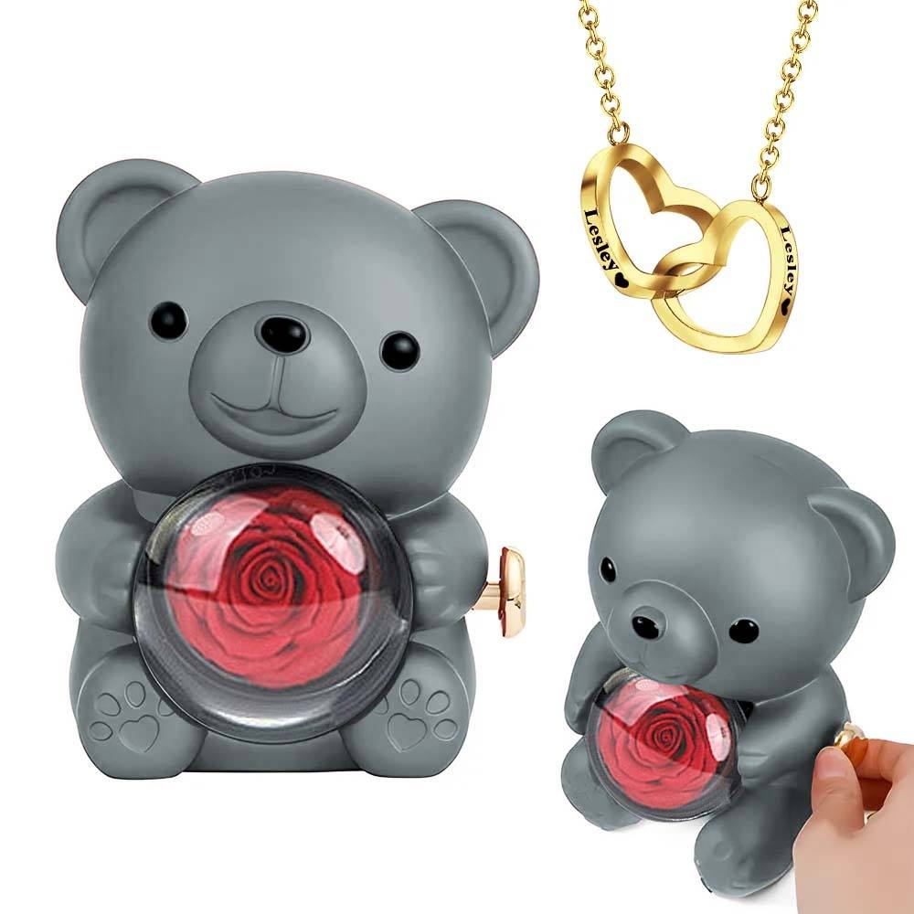 Engraved Heart Necklace with Real Rose Bear Giftbox Rose Shaped Necklace Gift Box Jewellery Gift Box