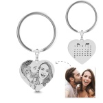 Personalized Calendar and Photo Keychain, Heart Keychain, Anniversary Gift for Couple