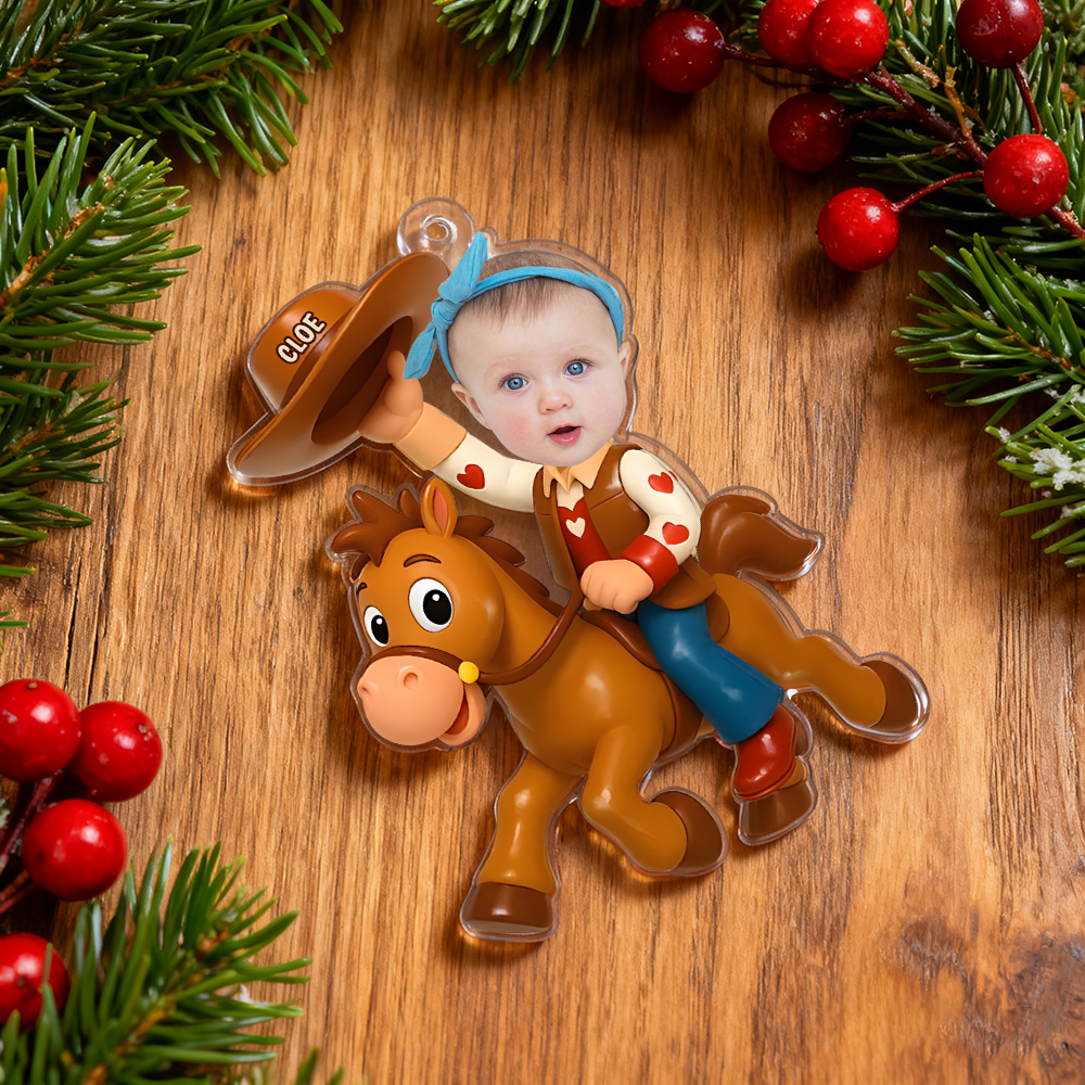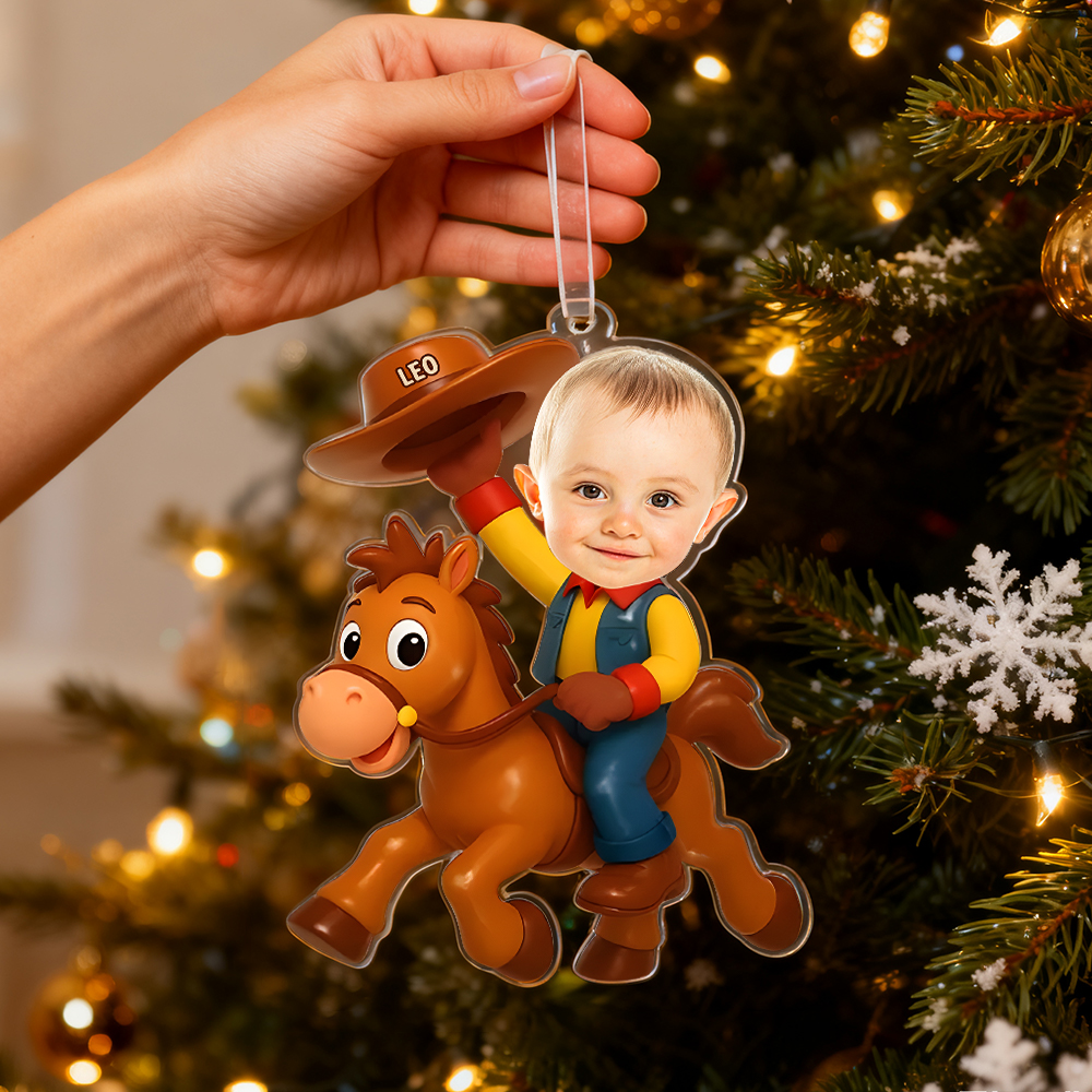 Personalized Christmas Photo Acrylic Ornament - Little Cowboy Adventure Time