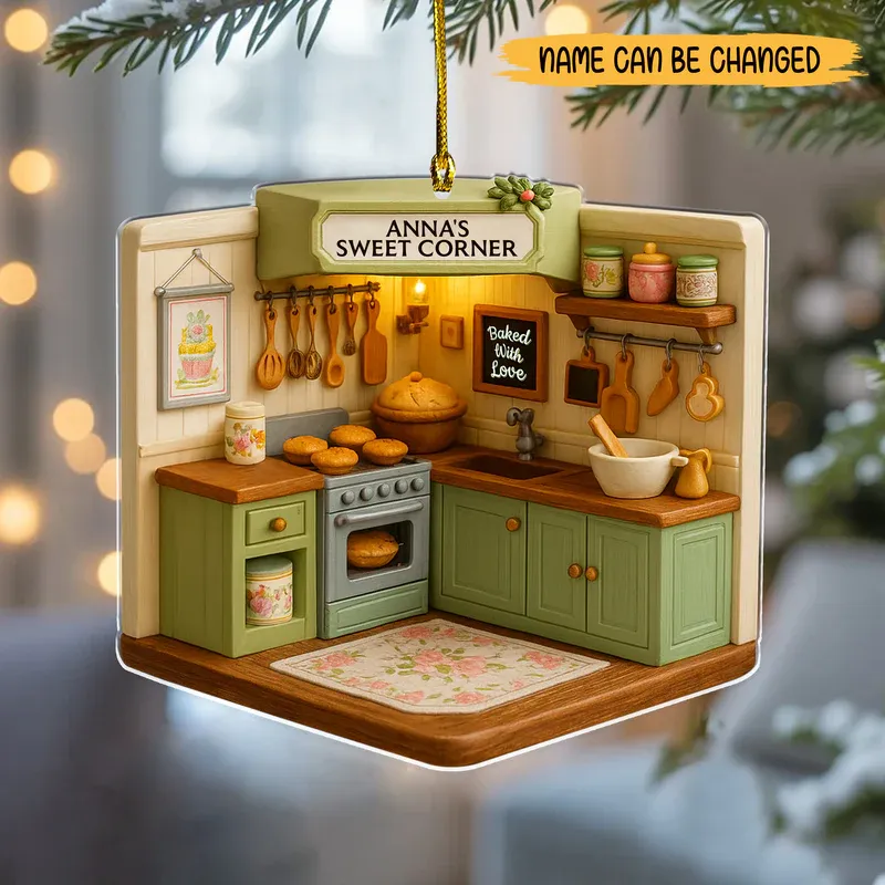 Personalized Cozy Baking Corner Acrylic Ornament – Custom Kitchen 2D Flat Print Christmas Decoration