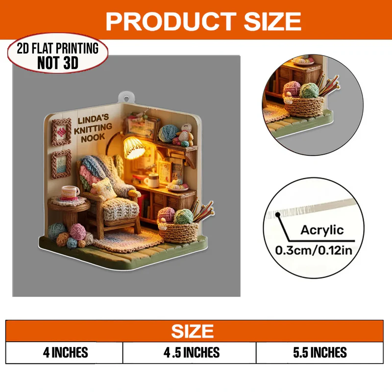 Personalized Cozy Knitting Nook 2D Flat Print Acrylic Ornament
