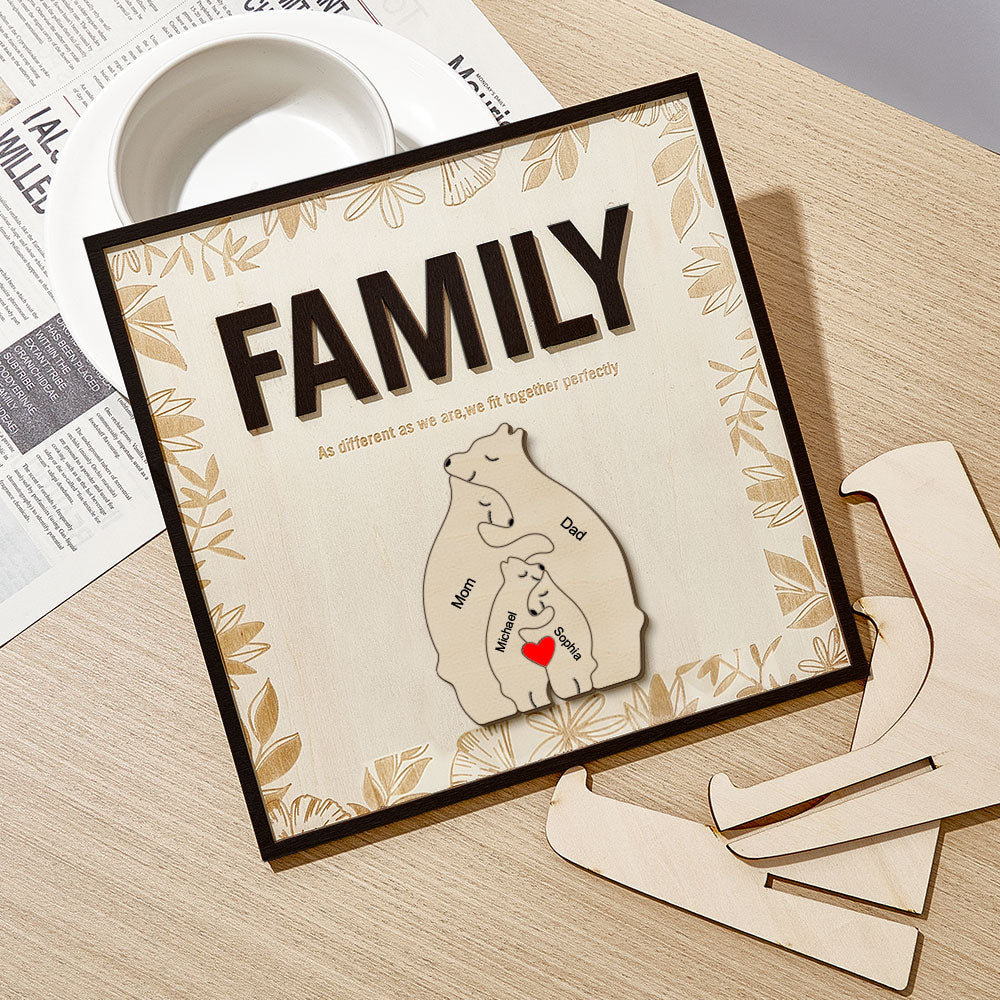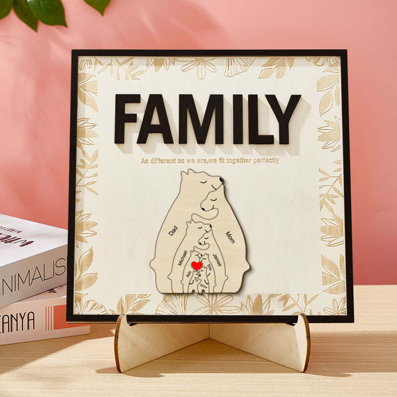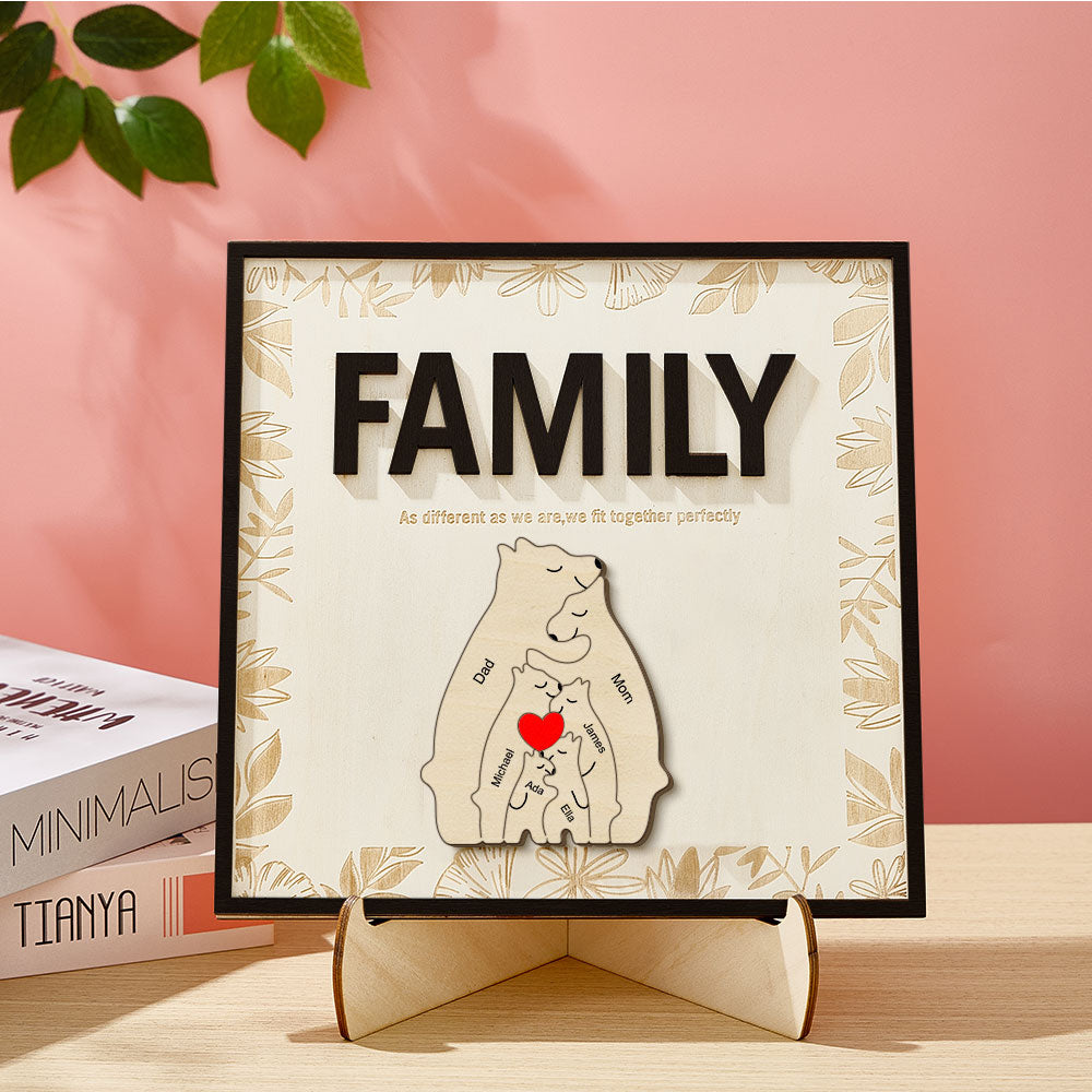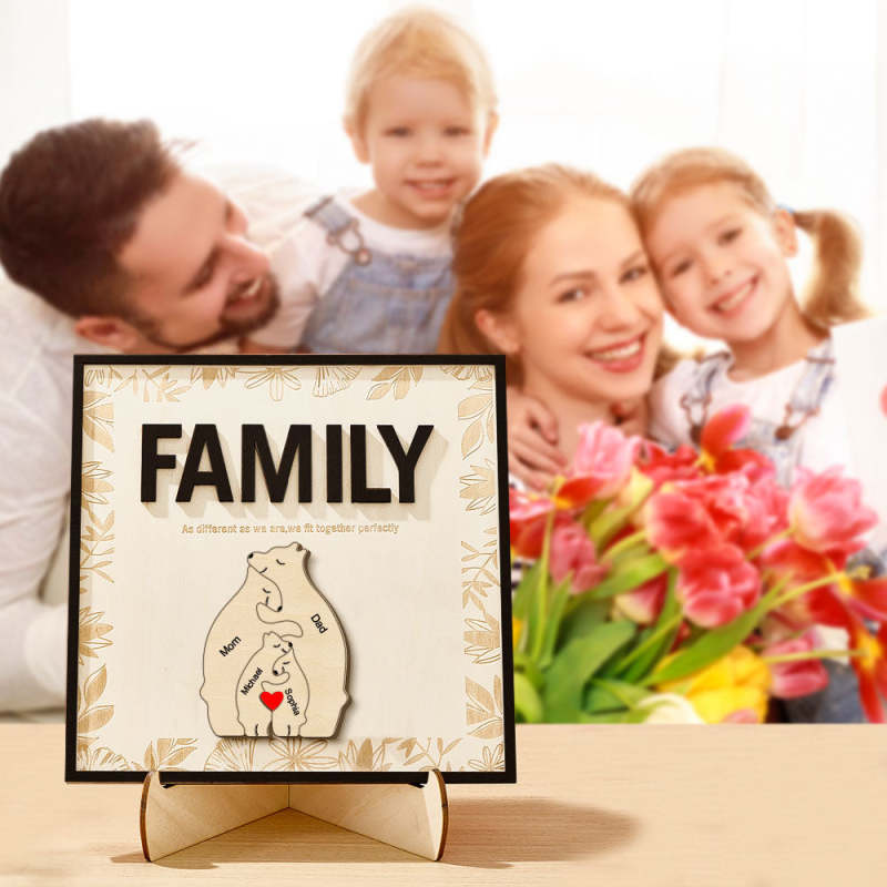 Personalized Family Bear Wooden Plaque Custom Family Member Name Sign Gift for Mom