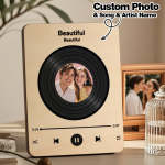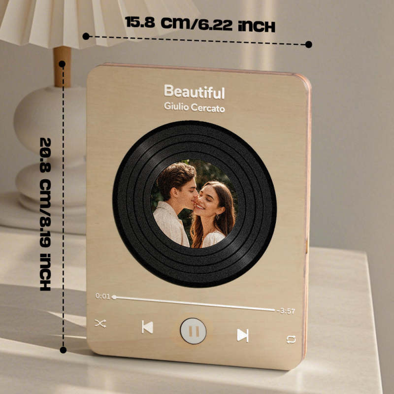 Personalized Photo Wooden Music Record Player Wedding Anniversary Gift for Couples