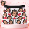 Valentine's Day Gifts Custom Big Face Boxer Shorts Colorful Waistband White Boxer Briefs Red and Pink Hearts Gifts For Him