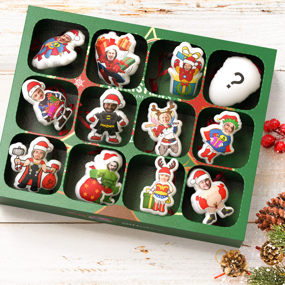 Inside the blind box there are 12 ornaments, and you can upload your photo to customize the unique Christmas blind box. Can be used as a Christmas gift, family gift for dad, mom, your family, friends, colleagues, anyone! There is a unique hidden model inside the blind box, hope you will like it.